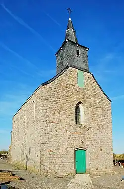 La chapelle, orientée du nord-est au sud-ouest, est édifiée en moellons de quartzite qui proviennent de l'ancien bois de Marilles[3] et couverte d'ardoises.