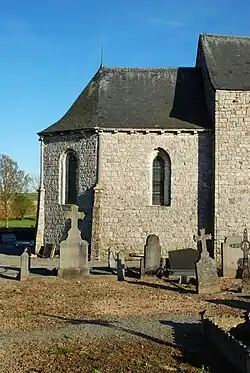 La travée de chœur et l'abside à pans sont percées d'un total de cinq fenêtres ogivales, en lancette[3].