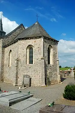L'abside à trois pans est ornée, sous sa fenêtre axiale, du monument funéraire de Denis Zualart (mort en 1576), Waulthier Scieve (mort en 1578)[1] et de Jehenne (Jeanne) Zualart, fille de Denis et épouse de Waulthier, décédée en 1580.