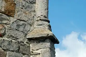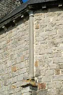 Le chevet est surmonté d'une corniche supportée par des modillons profilés[1] et par les colonnettes d'angle[3].