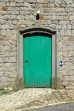 La façade nord montre encore les traces de l'ancienne porte, aujourd'hui murée[2] et remplacée au XVIIIe siècle par la porte axiale de style classique qui orne la façade occidentale[1].