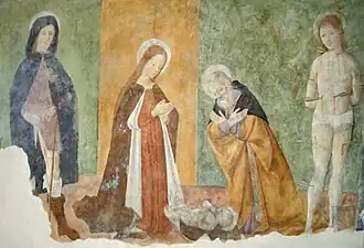 La chapelle abritait autrefois sur le maître-autel un précieux groupe sculptural de la fin du xve siècle représentant l’Adoration des mages, aujourd’hui conservé au musée civique Pier Alessandro Garda. Sur les murs intérieurs, des travaux de restauration ont révélé des fresques de la Renaissance qui ornaient l’autel latéral situé sur le mur gauche de la nef. Il s’agit d’un triptyque représentant la Vierge avec l’Enfant Jésus et saint Joseph entourés des saints Roch et Sébastien, attribué à l’école spanzottienne et daté de la fin du xve siècle.