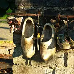 - selon la première de ces hypothèses, la chapelle servait de point de rendez-vous aux amoureux des environs et les couples auraient pris l'habitude d'y suspendre un sabot pour s'attirer les bonnes grâces de Notre-Dame ;