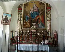 À l'intérieur de la chapelle, un tableau, placé au dessus de l'autel, représente la Vierge Marie et son enfant entourés de saint-Grégoire et de Joseph.