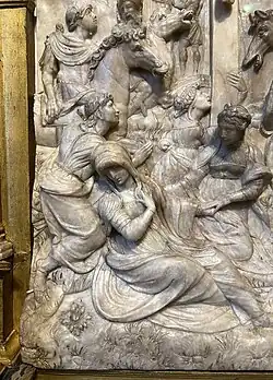Retable en albâtre et bois doré (réutilisé pour surmonter le mausolée de Maximilien II) (1550).