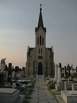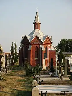 - La chapelle Lichtnekert, construite en 1913 dans un style néo-gothique avec des éléments néo-Renaissance, est l'œuvre de l'architecte Titus Mačković[2]. De plan octogonal, elle est constituée de briques rouges[2] ; chaque partie de l'octogone se termine par un pignon avec une décoration de briques blanches[3]. Le toit est couvert de tôle[2] et, au-dessus du toit, s'élève une lanterne reposant sur un tambour hexagonal et surmontée d'une croix[3].