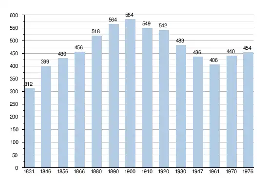 - Sources:INS, Rem:1831 jusqu'en 1970=recensements, 1976= nombre d'habitants au 31 décembre