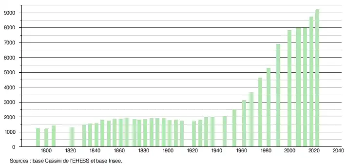 - ↑ Population municipale de référence en vigueur au 1er janvier 2025, millésimée 2022, définie dans les limites territoriales en vigueur au 1er janvier 2024, date de référence statistique : 1er janvier 2022.