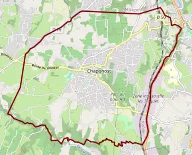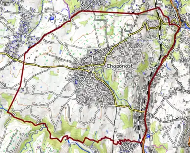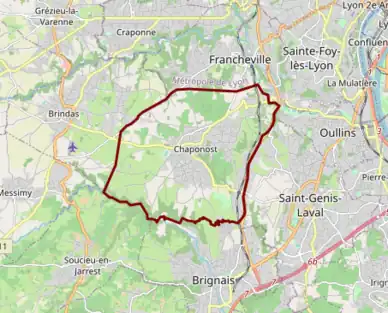 - ↑ « Orthodromie entre Chaponost et Brindas », sur fr.distance.to (consulté le ).