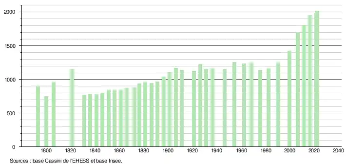 - ↑ Fiches Insee - Populations de référence de la commune pour les années 2006, 2007, 2008, 2009, 2010, 2011, 2012, 2013, 2014, 2015, 2016, 2017, 2018, 2019, 2020, 2021 et 2022.