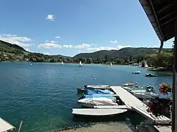 La commune borde la partie méridionale de ce lac naturel, d'une superficie de 3,9 km2. La berge sud, situé à l'ouest de la rive de la Fure héberge une plage composée de sable et de petit galets, ouverte au public[4].