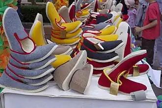 La charentaise est une sorte de pantoufle de feutre originaire de la région française de la Charente.