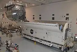 - la charge utile du satellite n'est que la fraction de ses équipements qui remplissent cette mission (antennes et systèmes d'amplification du signal pour un satellite de télécommunications) et s'oppose à la plate-forme (ou module de service) qui comprend notamment les panneaux solaires, le système de contrôle d'orientation, la structure porteuse, le système de contrôle thermique, etc.