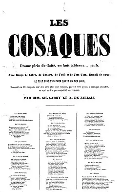 - Les Cosaques, drame en 8 tableaux, avec Amédée de Jallais, 1857