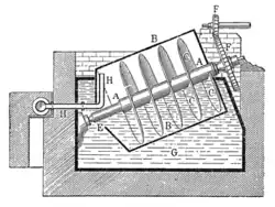 - la cagniardelle, en 1809, machine destinée à entraîner l'air par un liquide, aussi bien pour faire le vide dans une enceinte que pour décarburer les fontes par apport d'oxygène. Elle est devenue désuète depuis l'introduction des pompes-turbines. Son principe est fondé sur une vis d'Archimède faiblement inclinée, de façon que l'extrémité inférieure soit complètement immergée et l'extrémité supérieure seulement partiellement ; la vis est actionnée dans le sens inverse de celui qui ferait monter l'eau ; à chaque tour, l'air entre par l'extrémité supérieure et descend, en refoulant l'eau, le long des spires vers l'extrémité inférieure où un tuyau le récupère. Victor Hugo, entre autres, y fait allusion dans Les Travailleurs de la mer (IIe partie, chap. X) ;