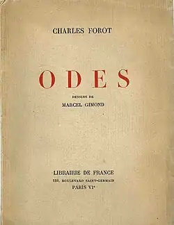 - Charles Forot (ill. Marcel Gimond), Odes, Libr. de France.,