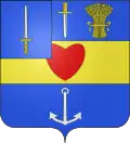 D'azur, à la fasce d'or, chargée d'un cœur de gueules, et accompagnée en chef d'une épée d'argent la pointe en bas, accostée de deux gerbes d'or, liées du même, et en pointe d'une ancre d'argent; au canton des comtes militaires brochant[1]. |