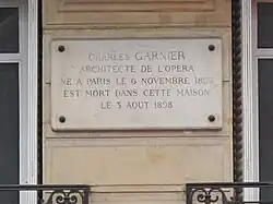 - En 1903, la place attenante à l'opéra de Paris fut nommée place Charles-Garnier en son hommage.