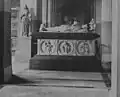 Son tombeau, sculpté par Jean Mone[6], est conservé au musée de Douai, tout comme le gisant du monument funéraire son fils Charles II de Lalaing. Il porte l'inscription suivante : « Cy gist Monseigneur Charles, conte de Lalaing, baron d'Escornaix, seigneur de Brakele, de Saint-Aubin en Douay, etc. En son temps fut conseiller et chambellan de très haut et très puissant prinches l'empereur Maximilien, du roy Philippe de Castille et de l'empereur Charles Cinquième de ce nom, roy des Espangnes, etc. Chevalier de l'Ordre de la Thoyson d'or, capitaine et gouverneur de la ville et chasteau d'Audenarde, fist plusieurs voyages, tant en guerre qu'en paix, au service des prinches dessusditz, eubt à femme dame Jacqueline de Luxembourg, eurent plusieurs beaux enfans, et ayant toute sa vie vescut catholiquement et en vray amateur de noblesse trespassa chevalier sans reproche en l'eage de chincquante noeuf ans audit chasteau d'Audenarde, le XVIIe jour de juillet MCCCCCXXV : priez Dieu pour son ame »