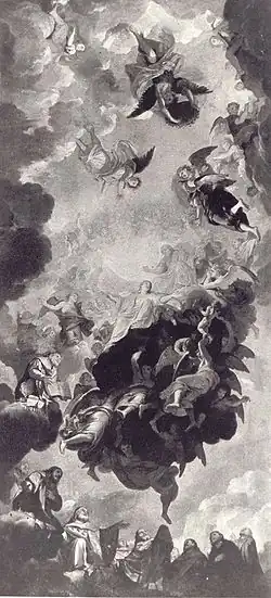 Enfin, c'est vers le milieu des années 1650 que la reine-mère Anne d'Autriche en personne commande au peintre six tableaux (tous perdus) pour les oratoires de l'enceinte intérieure du couvent : listés par Guillet de Saint-Georges, ils représentent Le Christ au jardin des oliviers, Le Christ en gloire adoré par les anges, Le Christ au désert, Un ange apparait à saint Joseph, Le Couronnement de sainte Thérèse (peut-être le tableau aujourd'hui conservé à la chapelle se Sucy-en-Brie[112]), et L'Assomption de la Vierge[107].