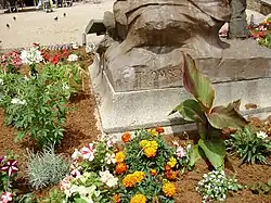- ↑ Grâce à cet arrêté pris sur proposition du sous-secrétaire d’État aux Beaux-Arts, une subvention de 2 000 francs imputable sur le crédit des travaux d’art est accordée à la ville. Cette subvention servira notamment à payer l’entreprise Vantalon pour les travaux de terrassement et maçonnerie d’entourage du monument (octobre 1906), la peinture et la dorure des lettres (juin 1908).