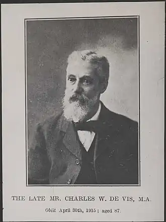 Charles Walter De Vis, née le à Birmingham en Angleterre, et mort le ) à Brisbane en Australie, est un zoologiste, ornithologue et ecclésiastique anglais. Né Devis, il adopte la graphie « De Vis » vers 1882.