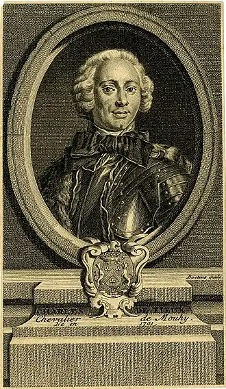 Charles de Fieux (1701-1784), est un romancier français du XVIIIe siècle. Prête-nom occasionnel de Voltaire[1], le chevalier de Mouhy[1] a notamment publié des ouvrages consacrés à l'histoire du théâtre.