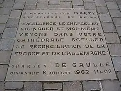 - ↑ Philippe Oulmont, « L’hommage municipal : continuités et fluctuations, 1940-2007 », dans Philippe Oulmont (dir.), Les Voies « de Gaulle » en France. Le Général dans l’espace et la mémoire des communes, Plon, 2009 (ISSN 1266-2437), mentionné par Sudhir Hazareesingh, Le mythe gaullien, Gallimard, 2010 (ISBN 978-2-07-012851-8) p. 179.