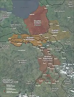 À sa mort, bien que sa sœur la duchesse douairière de Lorraine et de Bar fît valoir ses droits, l'empereur donna le duché à Guillaume de Clèves. La duchesse-douairière transmit ses revendications à son fils, le duc Antoine II de Lorraine et de Bar qui ajouta les armoiries de Gueldre aux siennes.
