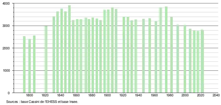 - ↑ Population municipale de référence en vigueur au 1er janvier 2025, millésimée 2022, définie dans les limites territoriales en vigueur au 1er janvier 2024, date de référence statistique : 1er janvier 2022.