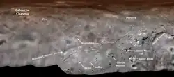 - ↑ (en) International Astronomical Union. Pluto's largest moon, Charon, gets its first official feature names. (consulté le ).