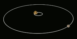 La résolution du problème à deux corps indique que deux corps célestes isolés orbitent autour du barycentre du système. Si un corps est largement plus massif que l'autre, le barycentre est situé dans les profondeurs du premier permettant simplement de dire en première approximation que le plus petit orbite autour du plus massif, solution applicable à tous les satellites des planètes du Système solaire, y compris de la Lune autour de la Terre, le couple où le ratio des masses en jeu est le plus près de l’unité (néanmoins à seulement 1,2:100). Avec plus de 10 % de la masse du système provenant du corps secondaire et un barycentre situé à l’extérieur des deux corps, le couple Pluton–Charon représente un cas très particulier, unique dans le Système solaire pour des corps aussi massifs. Cette situation positionne Charon dans une zone grise, alimentant les discussions sur son statut.
