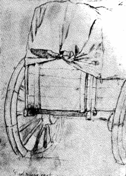 Les charrettes, construites avec des matériaux locaux, pouvaient être facilement réparées. C'est pourquoi des fournitures de bois étaient toujours apportées, une charrette pouvait casser une demi-douzaine de fois sur un seul voyage[1].