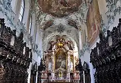 C'est vers l'an 1700 que l'église est redécorée dans le goût baroque. Les magnifiques stalles du chœur des moines sont terminées en 1701 et sont de la main du Thurgovien Chrisostomus Fröhli. De grandes fenêtres sont également percées. Ensuite l'aile orientale est reconstruite ; elle donne sur le petit cloître avec la sacristie, la salle capitulaire et la bibliothèque.