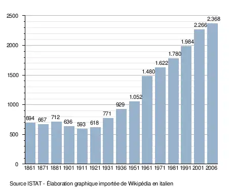 - ↑ (it) Popolazione residente e bilancio demografico sur le site de l'ISTAT.