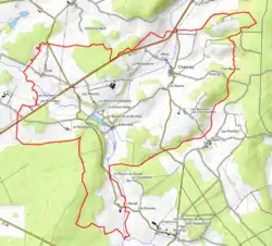L'occupation des sols de la commune, telle qu'elle ressort de la base de données européenne d’occupation biophysique des sols Corine Land Cover (CLC), est marquée par l'importance des territoires agricoles (71,9 % en 2018), une proportion sensiblement équivalente à celle de 1990 (72,1 %). La répartition détaillée en 2018 est la suivante : terres arables (44 %), forêts (27,4 %), prairies (25,8 %), cultures permanentes (2,2 %), milieux à végétation arbustive et/ou herbacée (0,6 %)[14]. L'évolution de l’occupation des sols de la commune et de ses infrastructures peut être observée sur les différentes représentations cartographiques du territoire : la carte de Cassini (XVIIIe siècle), la carte d'état-major (1820-1866) et les cartes ou photos aériennes de l'IGN pour la période actuelle (1950 à aujourd'hui)[Carte 1].