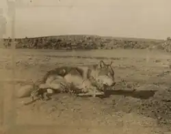 Capture au lasso d'un Loup des plaines, dans le Wyoming en 1887. Photographie prise par l'Américain John C. H. Grabill.