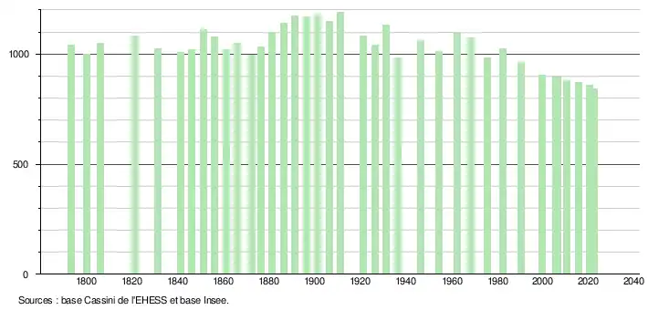 - ↑ Fiches Insee - Populations de référence de la commune pour les années 2006, 2007, 2008, 2009, 2010, 2011, 2012, 2013, 2014, 2015, 2016, 2017, 2018, 2019, 2020, 2021 et 2022.