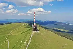 Versant sud du Chasseral, avec l'antenne de télécommunication au centre.