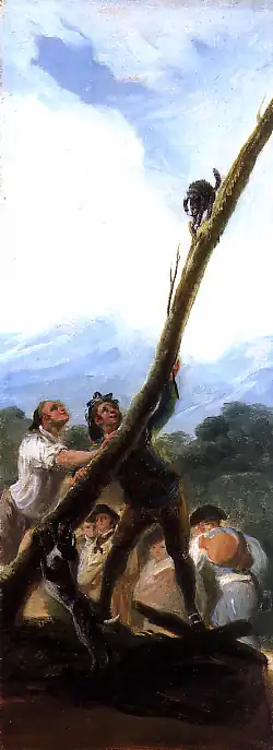 Cette peinture accompagne dans sa série Goûter champêtre, La Prairie de Saint-Isidore et La Poule aveugle, desquelles seule la première a été convertie en tapisserie. Dans toutes les compositions, le thème principal est celui de la fête patronale, commun à beaucoup de tableaux de Goya, même hors des cartons.