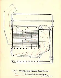 La disposition générale est celle d'un cylindre horizontal trapu. Un ou plusieurs grands fourneaux cylindriques se trouvent dans la partie inférieure de la coque de la chaudière. Au-dessus se trouvent de nombreux tubes à fumée de petit diamètre. Les gaz et la fumée provenant du fourneau passent à l'arrière de la chaudière, puis retournent dans les petits tubes et sortent par la cheminée. Les extrémités de ces multiples tubes sont coiffées par une boîte à fumée, à l'extérieur de la coque de la chaudière[1].