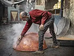 Autrefois, les compagnons transformaient les métaux en feuilles (tôles), manuellement par battage ou martelage. Depuis approximativement le milieu du XXe siècle, les machines permettent de développer la production d'objets simples, notamment les tours à repousser et les presses à emboutir. C'est aussi le travail du chaudronnier que de façonner les produits sidérurgiques semi-finis comme les tubes et les profilés.