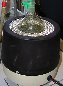Un chauffe-ballon est, comme son nom l'indique, un appareil électrique qui permet de chauffer les ballons. Il se présente généralement sous la forme d'un cylindre (ou parfois d'un pavé droit) sur la surface duquel on aurait creusé une demi-sphère. Il est utilisé pour les montages, notamment à reflux.