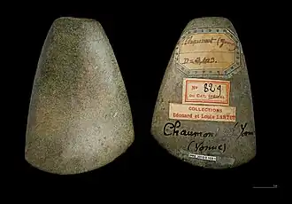 Une extrémité de hache en jadéite, du Néolithique, a été trouvé à Chaumont. Elle a fait partie de la collection d'Édouard puis de Louis Lartet.