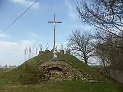 Vue actuelle du Calvaire de ChaunayLe Calvaire est installé sur un promontoire de 6m. de long. Il marquait l'entrée de la commune depuis la Nationale 10.Il a été inauguré le 19 Avril 1913.Il a été restauré en 2005.