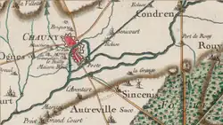 - ↑ Moët del aForte-Maison, Histoire de la ruine de Condren et de l'origine de Chauny, Société des Antiquaires de Noyon, p. 431 et, Abbé Lambert, Recherches sur l'origine et l'antiquité de Chauny, Bulletin de la Société littéraire de Chauny, 1860, p. 26