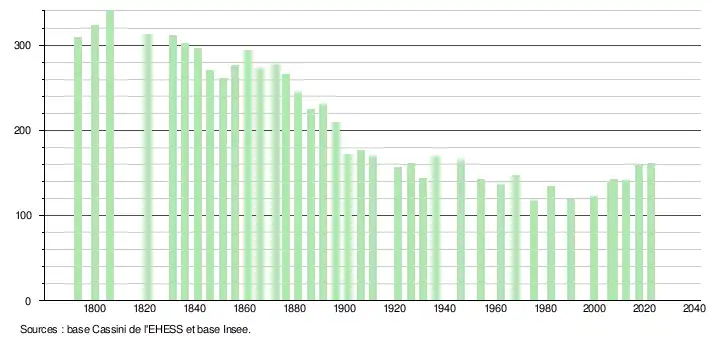 - ↑ Fiches Insee - Populations de référence de la commune pour les années 2006, 2007, 2008, 2009, 2010, 2011, 2012, 2013, 2014, 2015, 2016, 2017, 2018, 2019, 2020, 2021 et 2022.