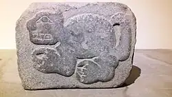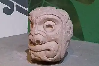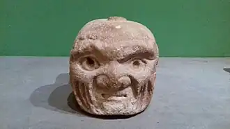 Une théorie considère qu'il faut y voir les gardiens du temple. Ces têtes-tenons ont été travaillées dans des grès de consistances différentes, en quartzite et en granite. Sur les cinquante-six têtes que comptait le monument, une seule demeure en place. Les autres ont disparu ou sont conservées au musée[11].