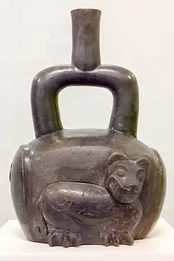 Les anciens Chavinos ont représenté leurs dieux sur de grands monolithes. Les plus connus sont le Lanzón (la grand lance en espagnol), la stèle Raimondi et l'obélisque Tello[7]. Chacun d'eux est un menhir qui, dans la culture andine, a une transcendance spirituelle et sert au contrôle politique et social de la population, menacée par des éléments de la nature et la pénurie alimentaire. Leur nom en quechua, « huanca », signifie « pierre de pouvoir » et ils ont un caractère éminemment sacré.