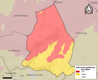 Le retrait-gonflement des sols argileux est susceptible d'engendrer des dommages importants aux bâtiments en cas d’alternance de périodes de sécheresse et de pluie. La totalité de la commune est en aléa moyen ou fort (84,7 % au niveau départemental et 48,5 % au niveau national). Sur les 192 bâtiments dénombrés sur la commune en 2019, 192 sont en aléa moyen ou fort, soit 100 %, à comparer aux 86 % au niveau départemental et 54 % au niveau national. Une cartographie de l'exposition du territoire national au retrait gonflement des sols argileux est disponible sur le site du BRGM[21],[22].